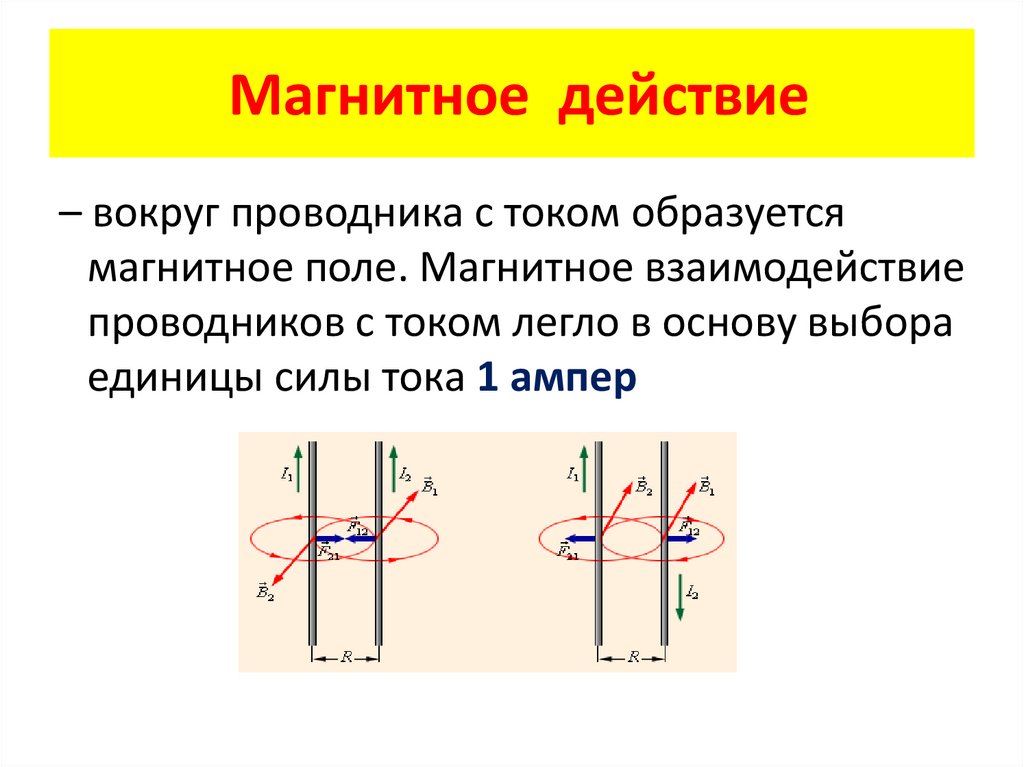 Магнитное действие– вокруг проводника с током образуется
