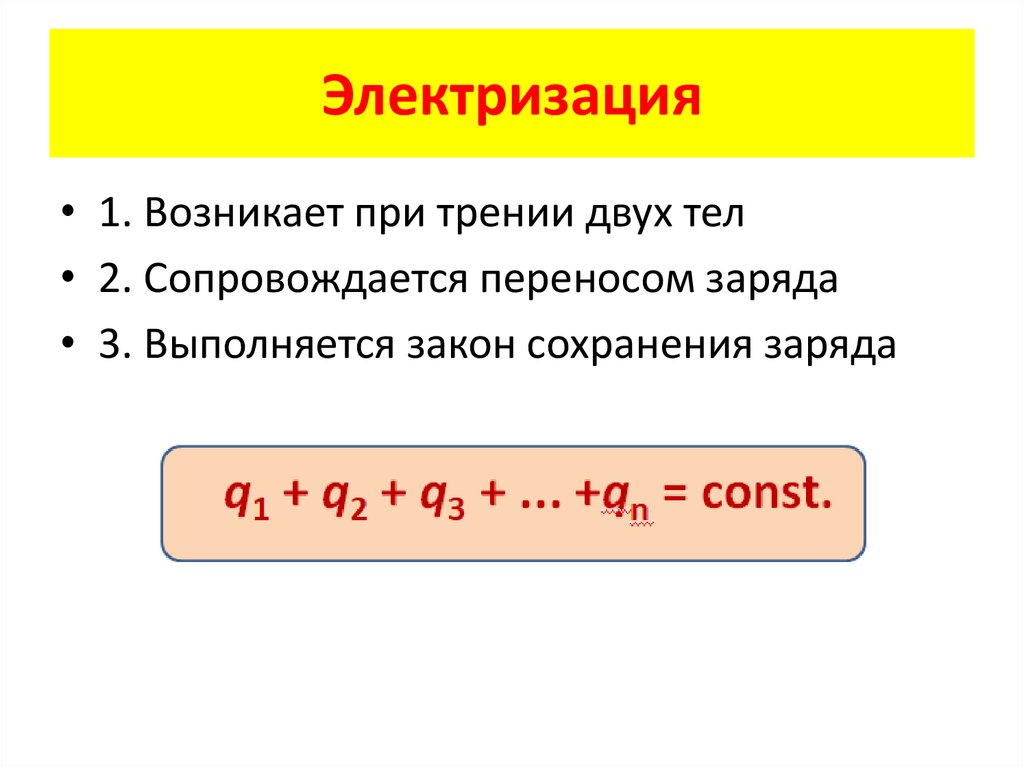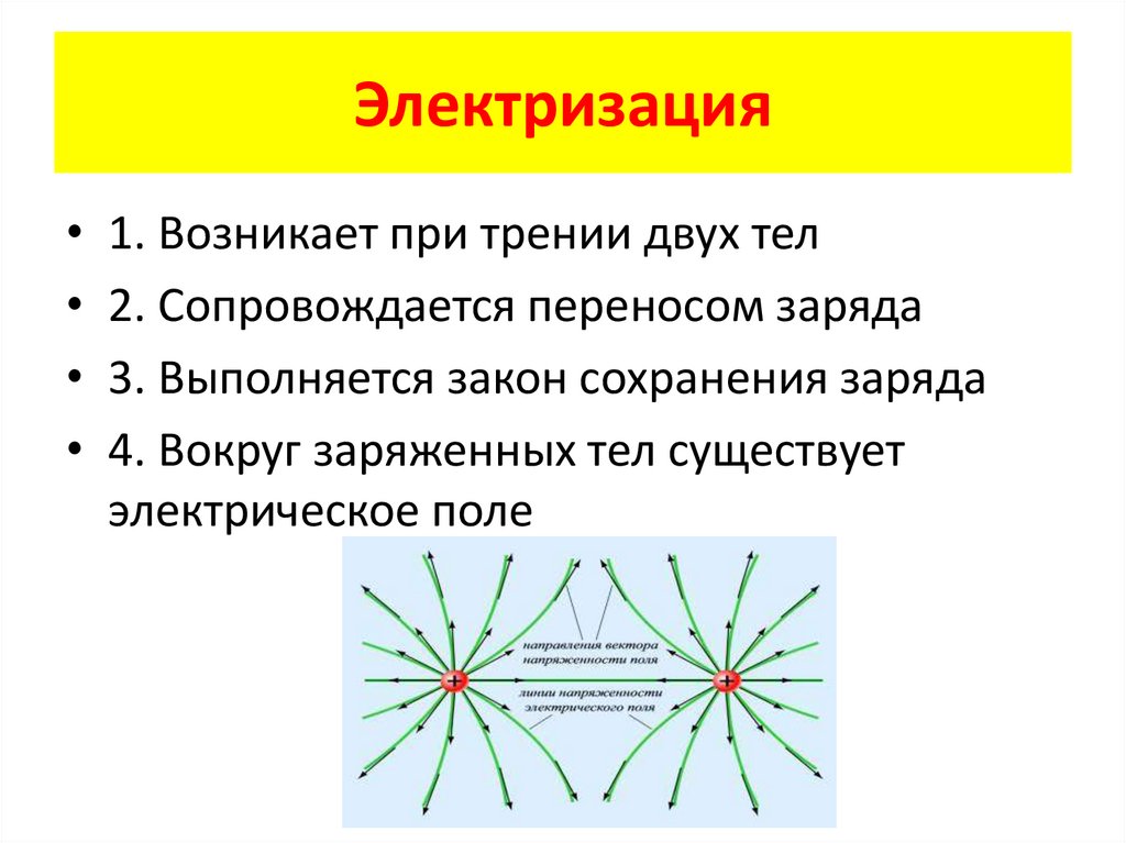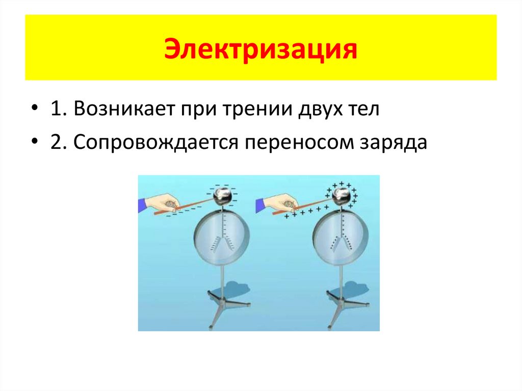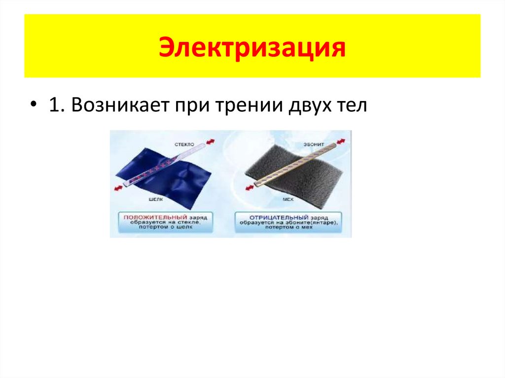 Электризация1. Возникает при трении двух тел