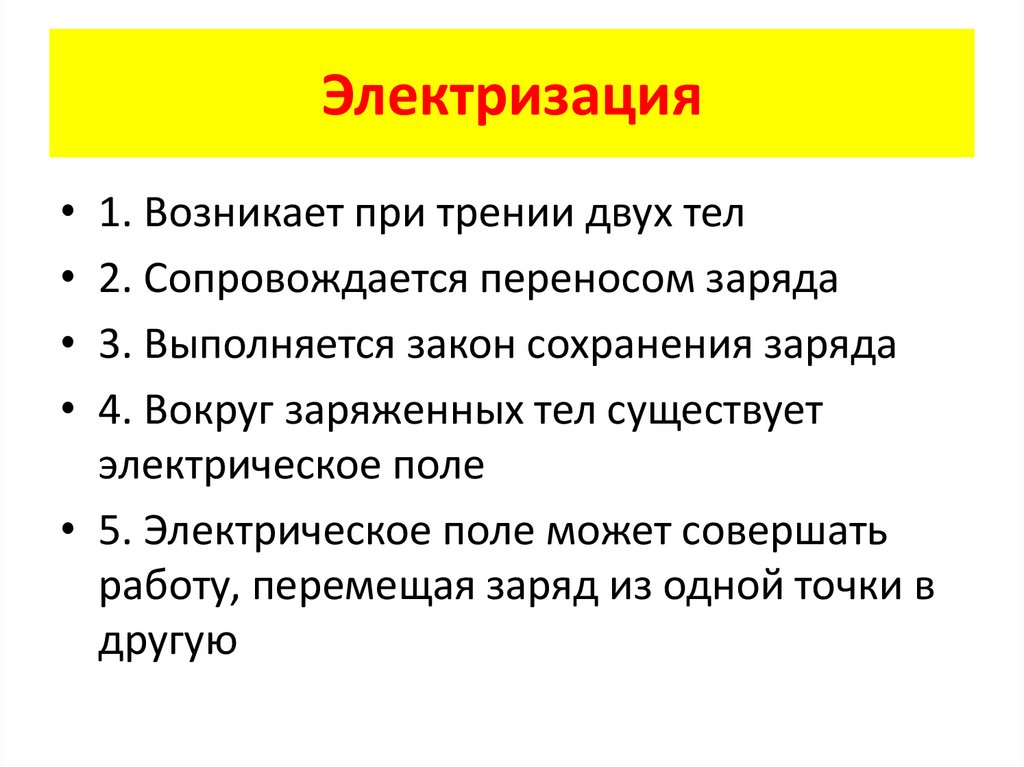 Электризация• 5. Электрическое поле может совершать