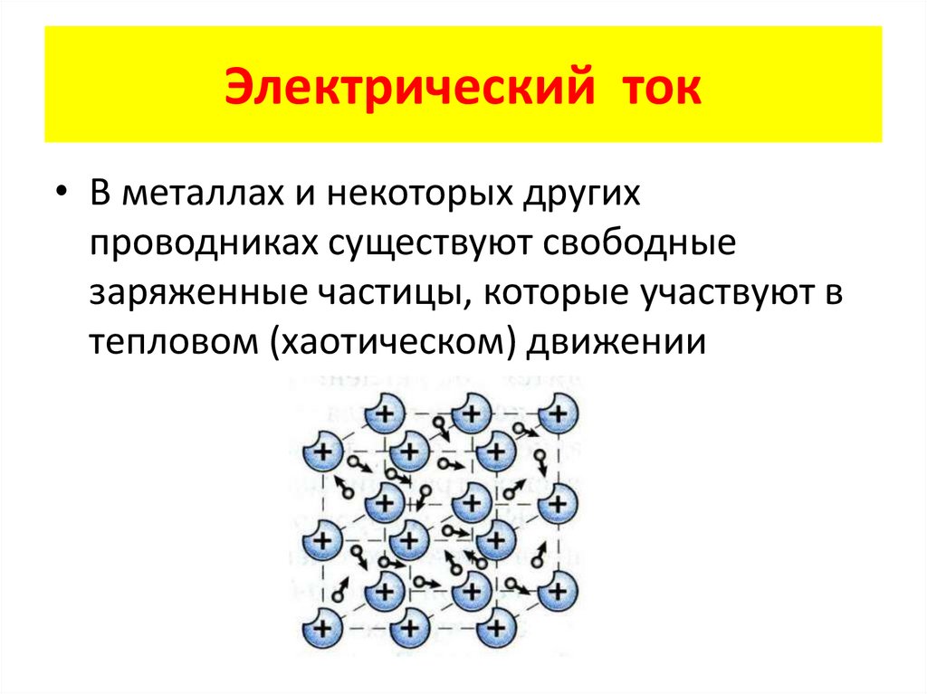 Электрический ток• В металлах и некоторых других