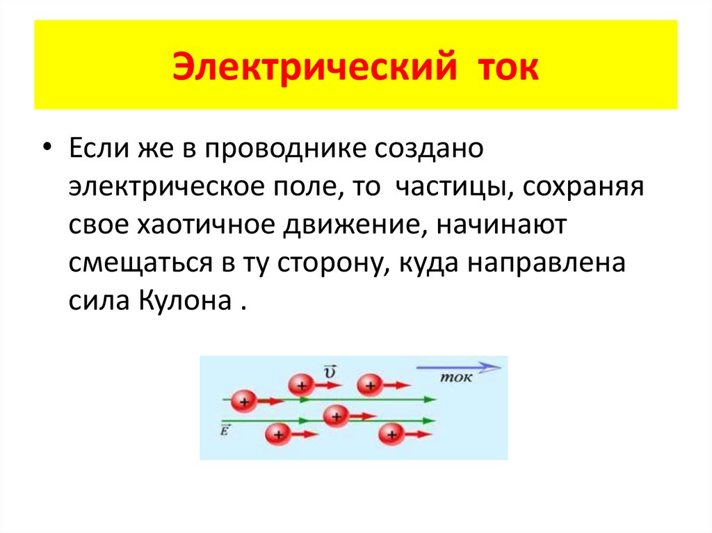 Электрический ток• Если же в проводнике создано