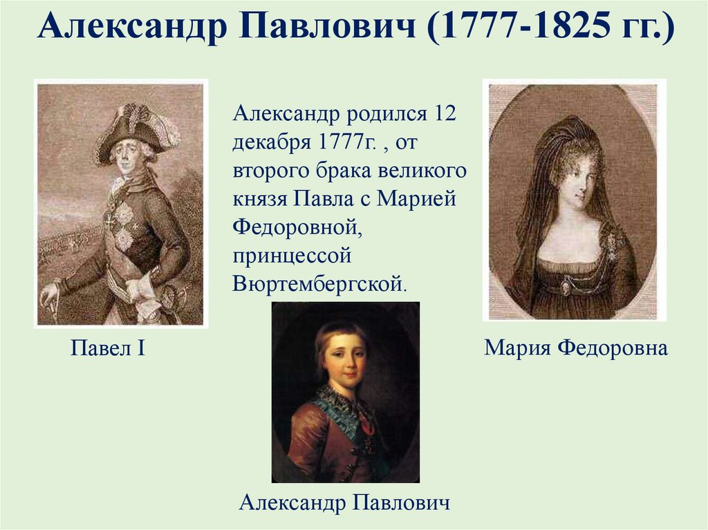 Александр Павлович (1777-1825 гг.)Александр родился 12