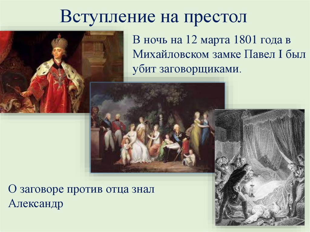 Вступление на престолВ ночь на 12 марта 1801 года в