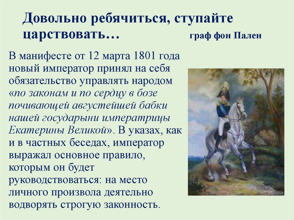В манифесте от 12 марта 1801 года