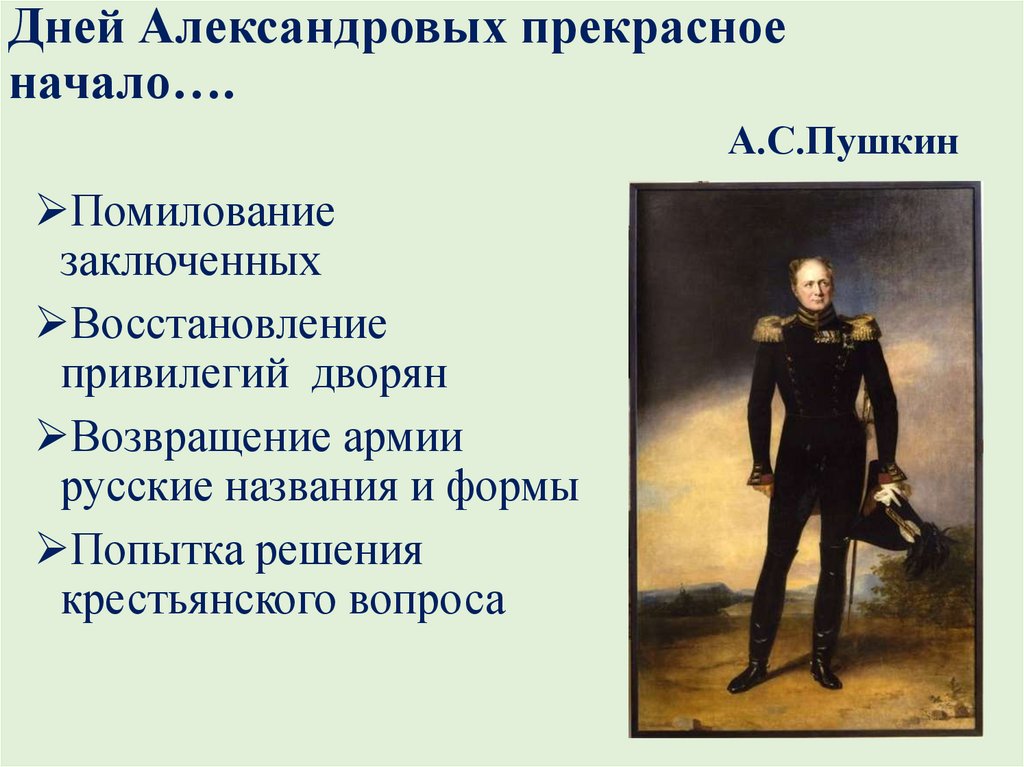 Дней Александровых прекрасноеначало….