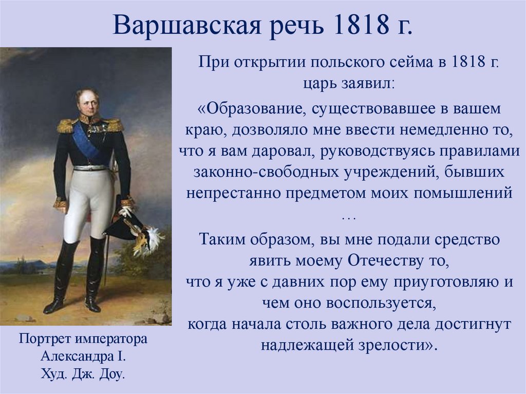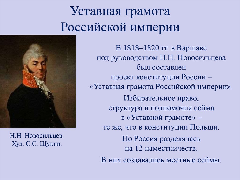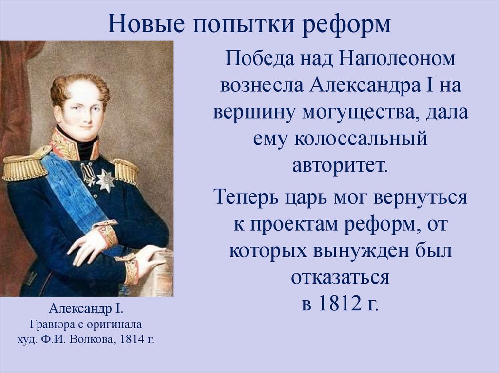 В 1818 г. Александр I поручил составление
