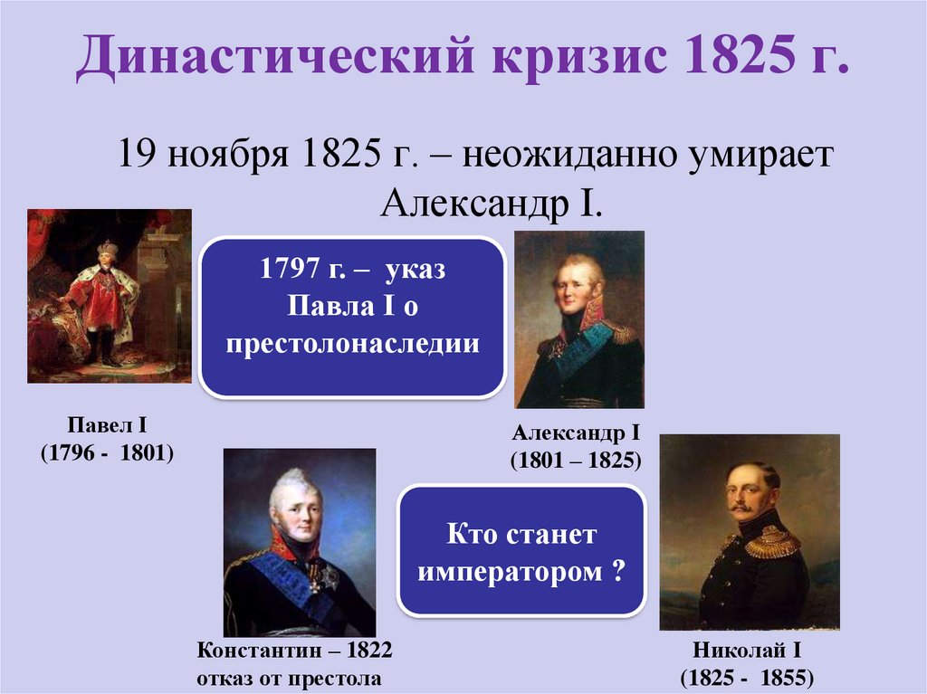 В ноябре 1825 г. царь внезапно умер в Таганроге.