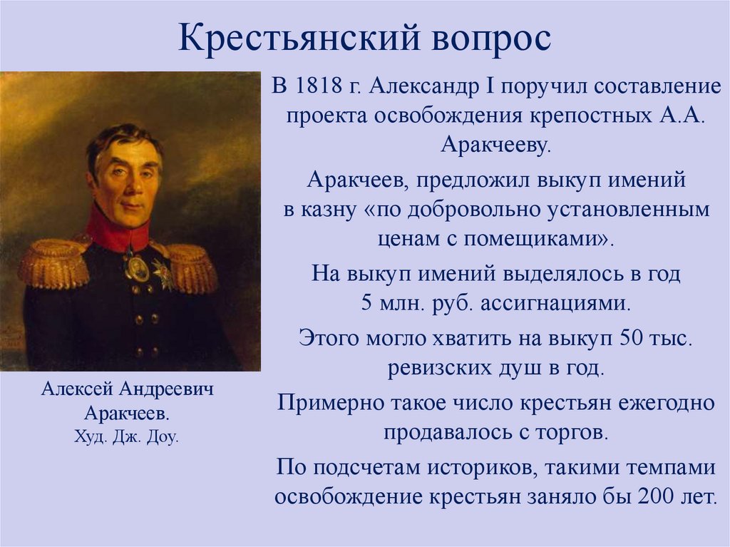 Аракчеев, предложил выкуп имений