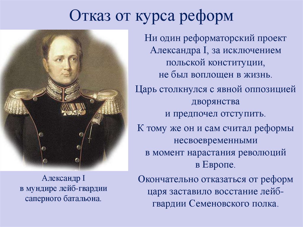 Отказ от курса реформАлександр I