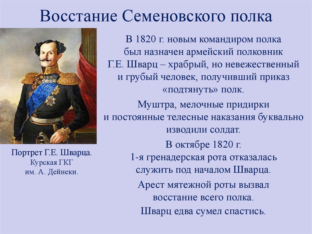 Восстание Семеновского полкаПортрет Г.Е. Шварца.