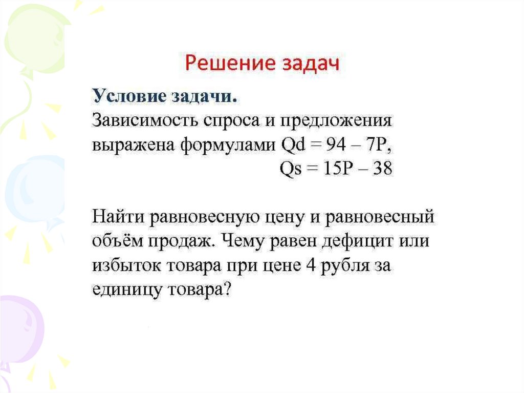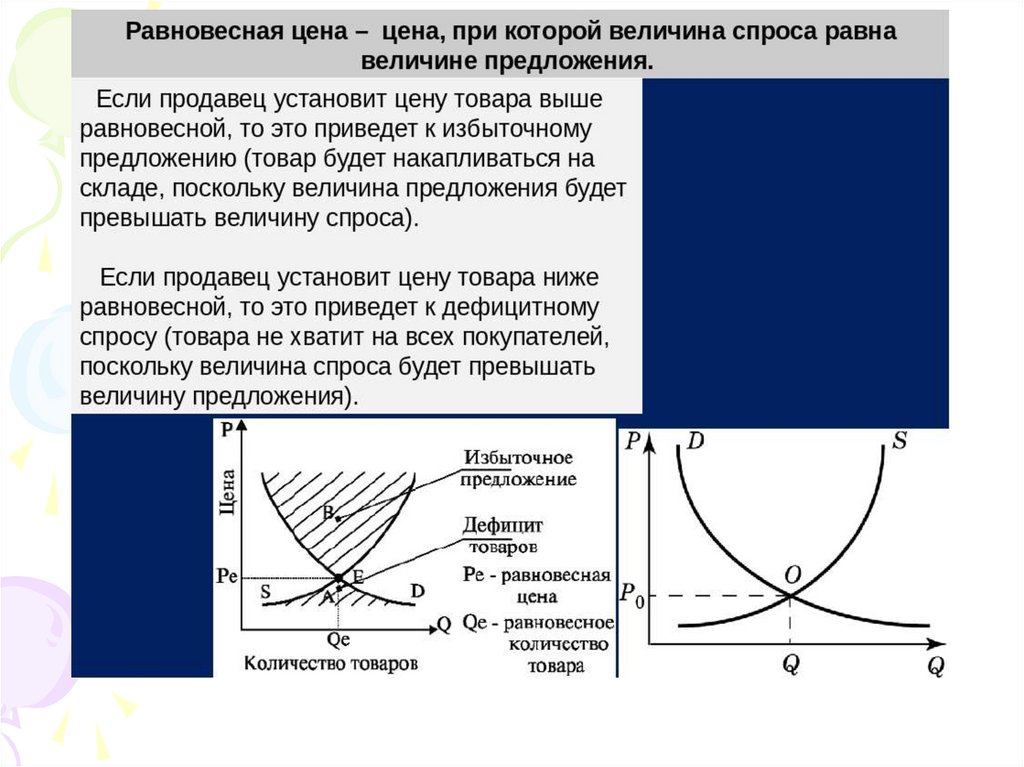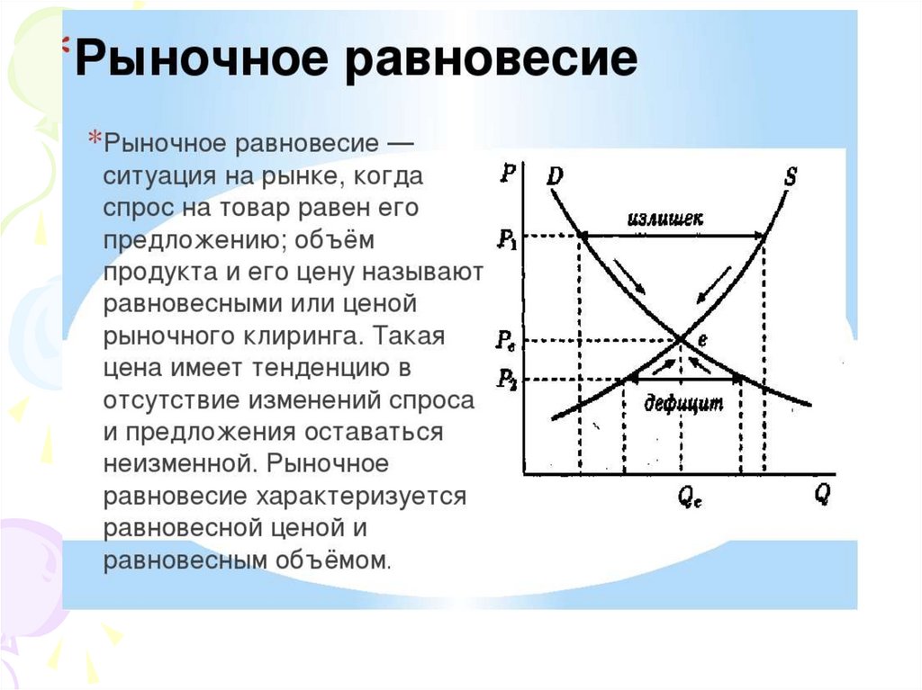 • Поэтому, когда уровень цен P на рынке