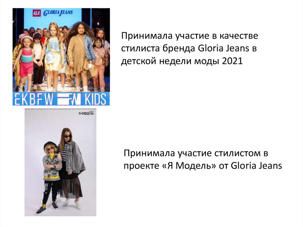Принимала участие в качествестилиста бренда Gloria Jeans в