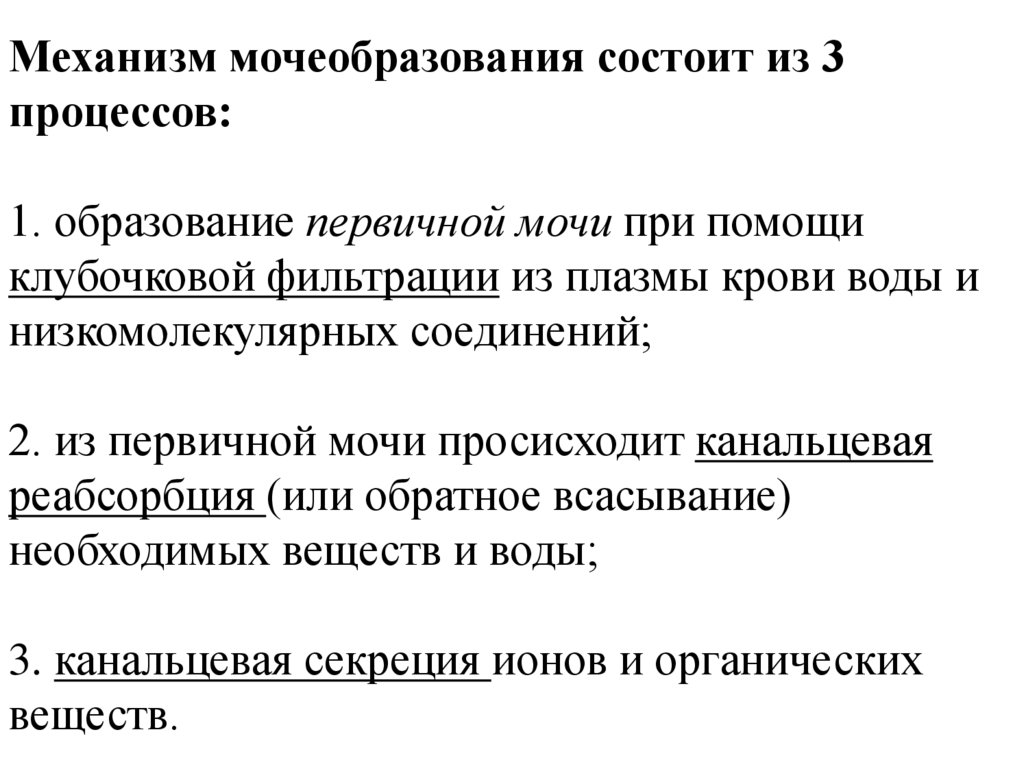Механизм мочеобразования состоит из 3процессов: