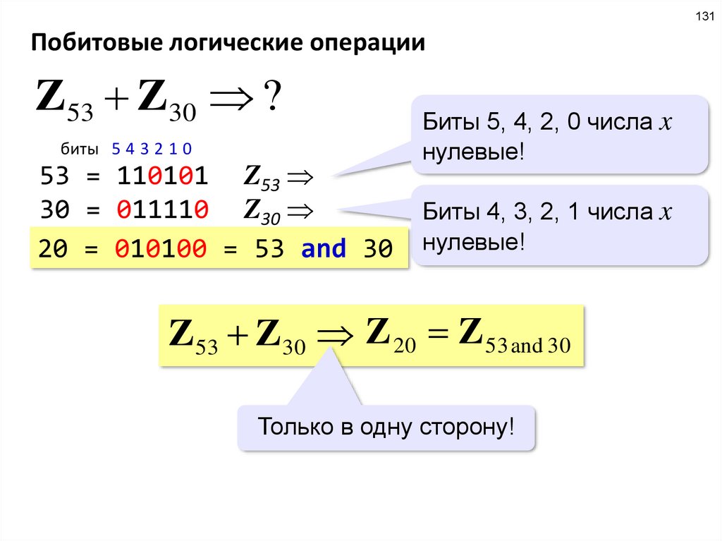 теперь попробуем понять, что означают условия типа X & 20 = 0 и X & 20 ¹ 0; побитовая