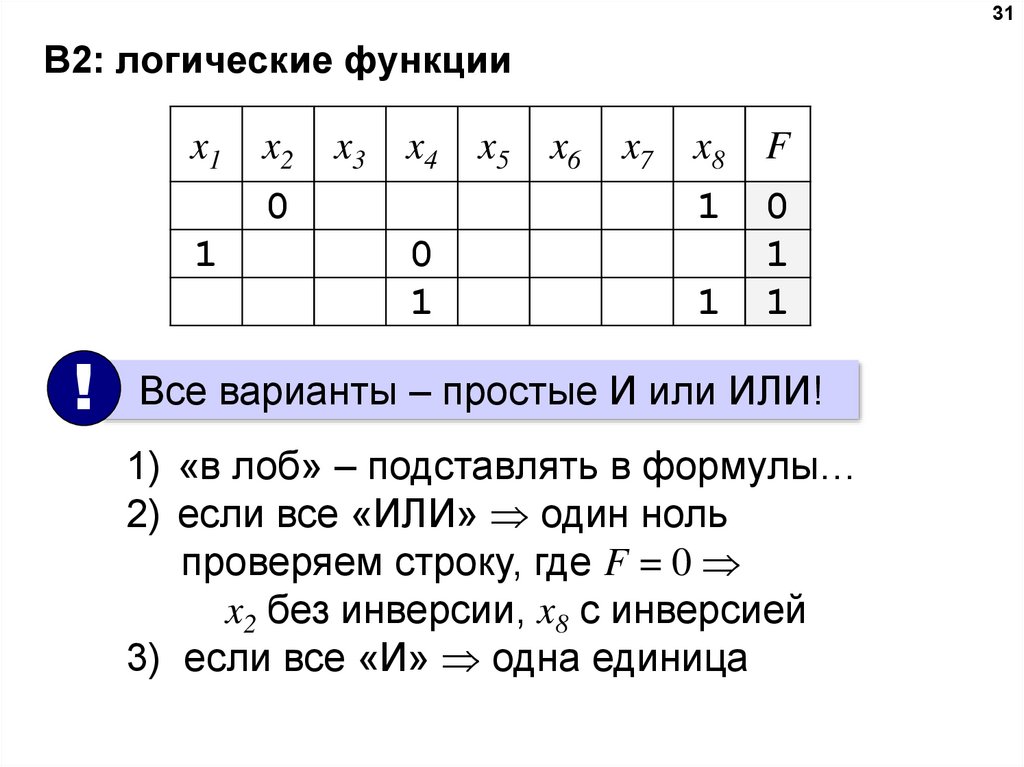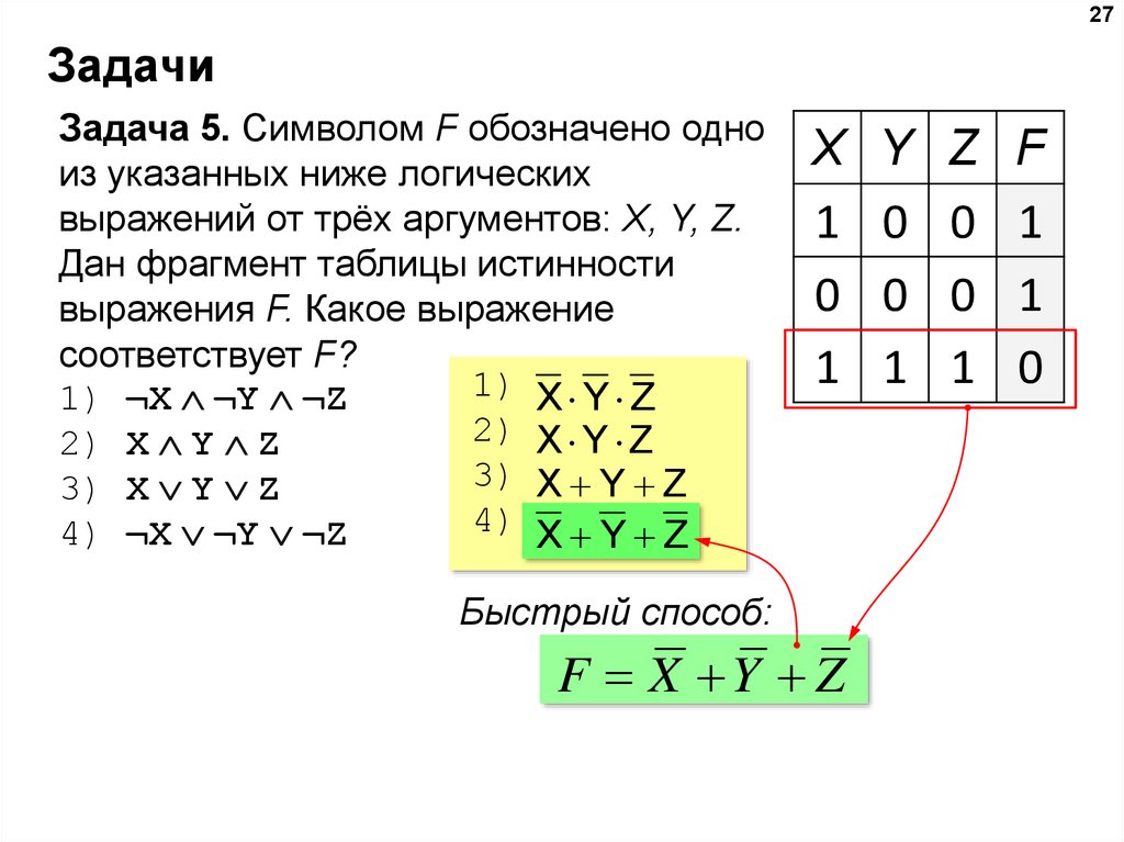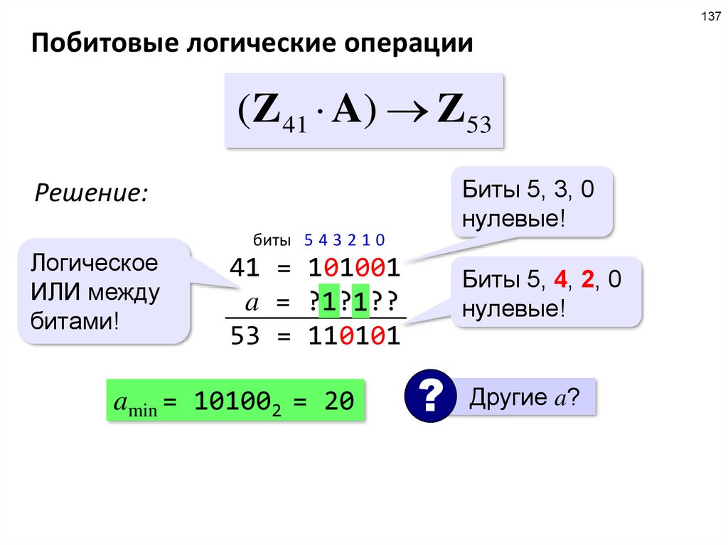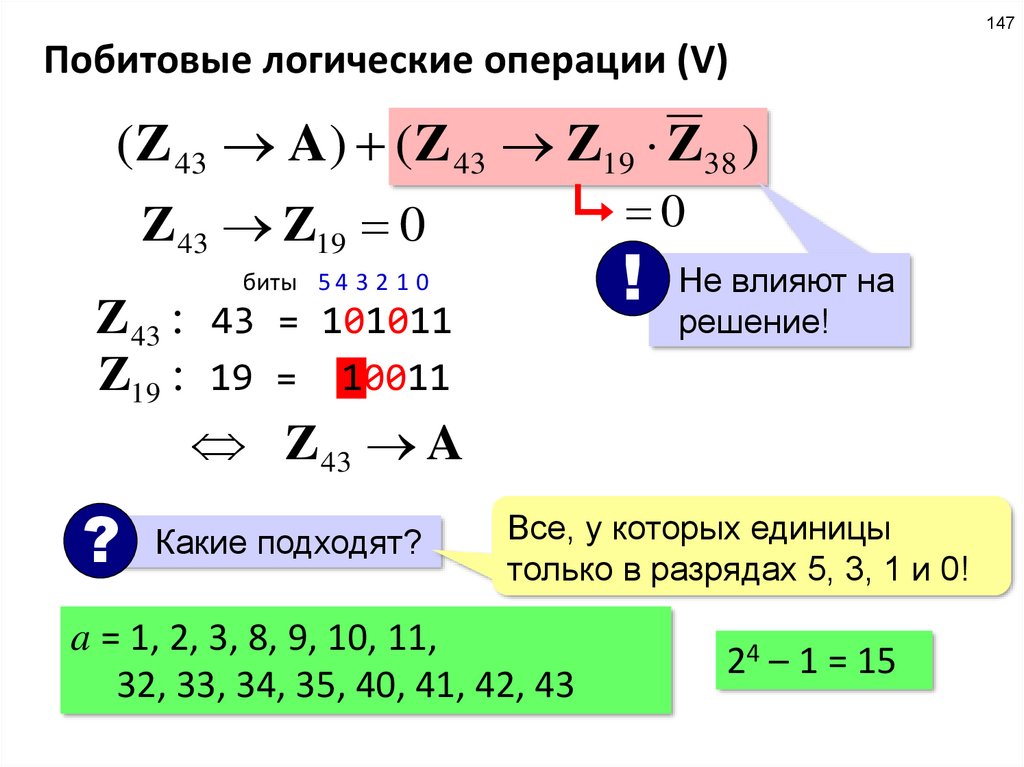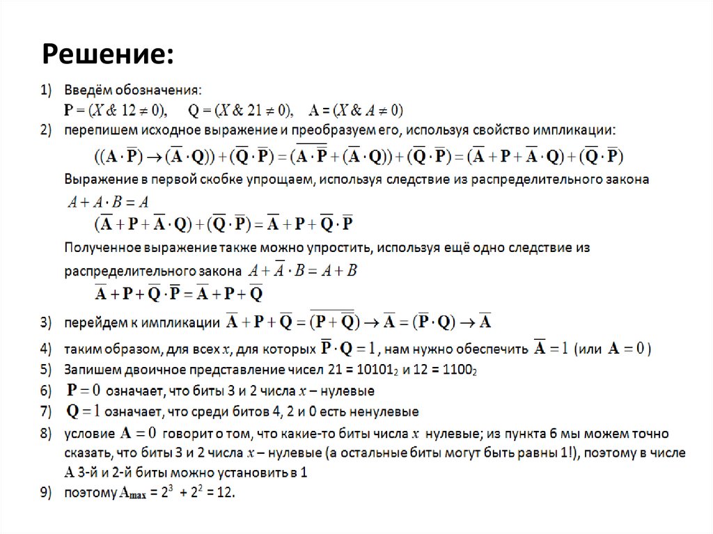 что же следует из выполнения P и Q одновременно? только то, что биты {4, 2, 0} числа X –