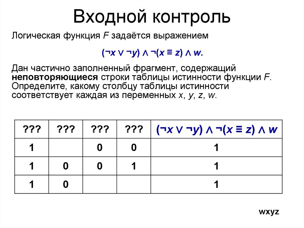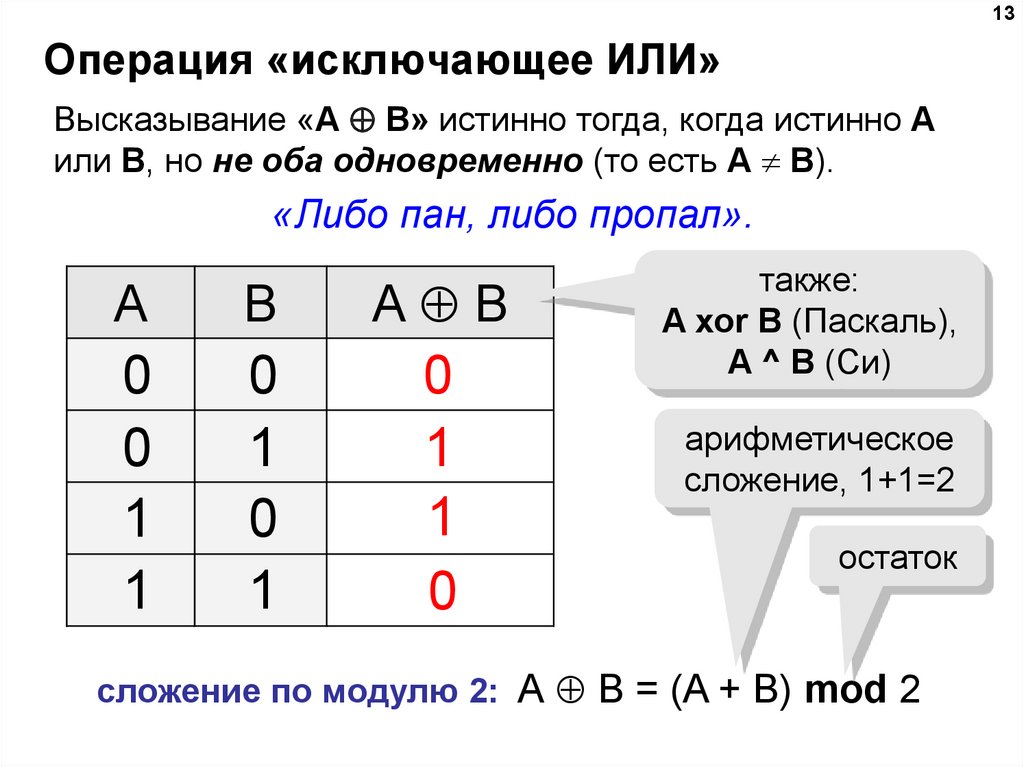 истинно (т. е. принимает значение 1) при