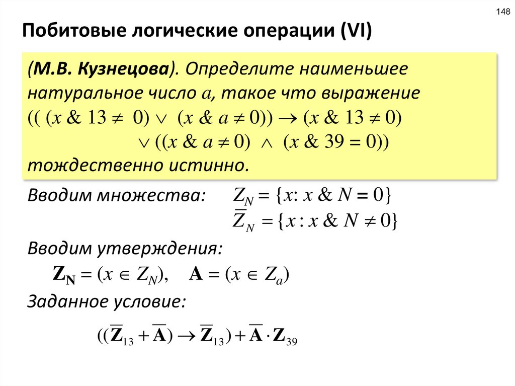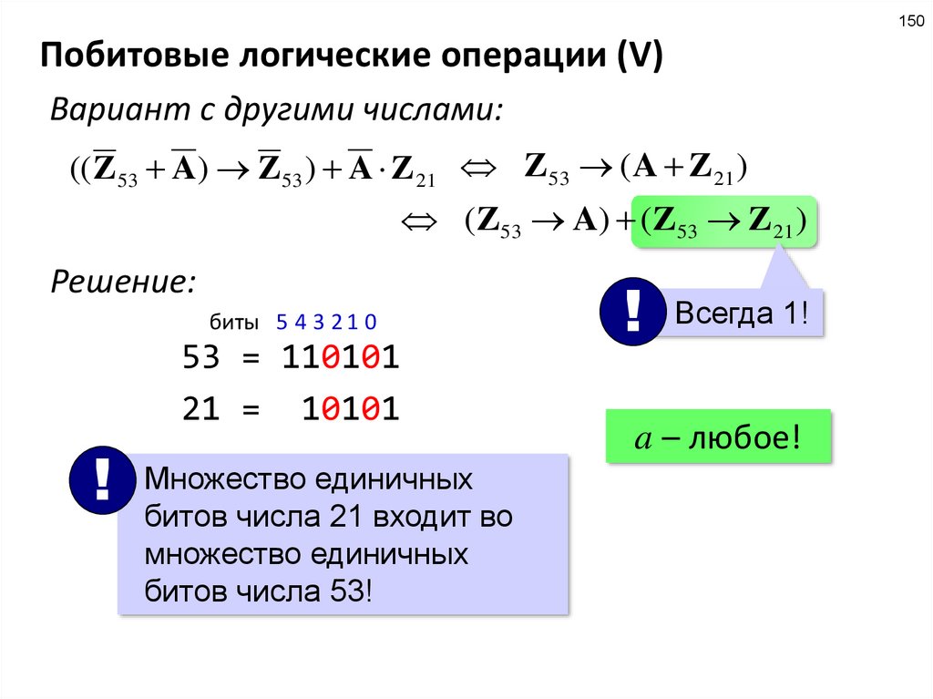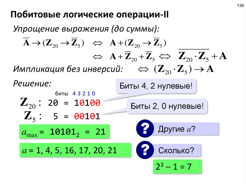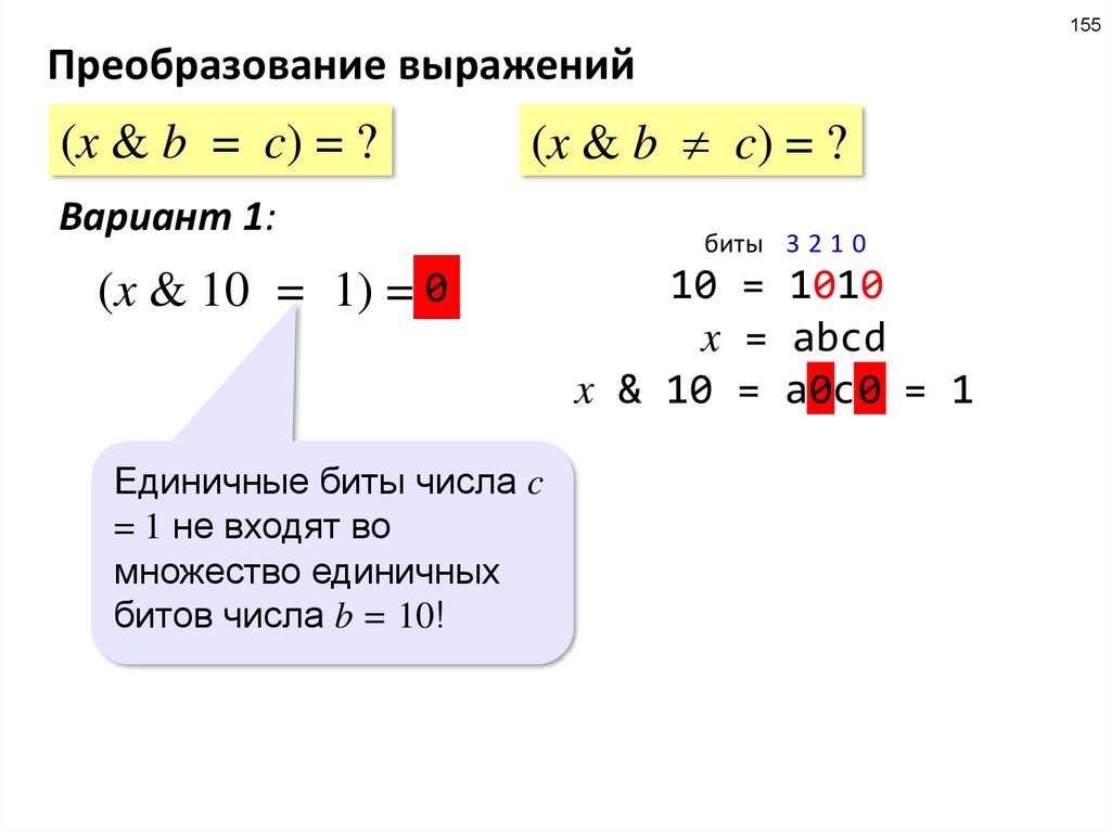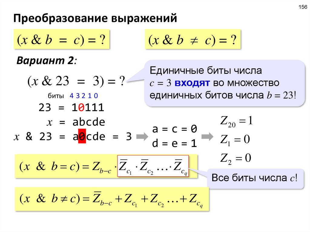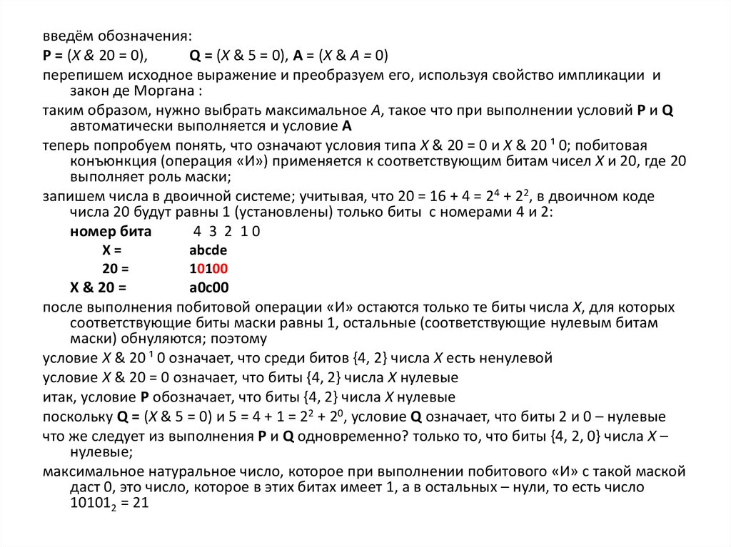поскольку Q = (X & 5 = 0) и 5 = 4 + 1 = 22 + 20, условие Q означает, что биты 2 и 0 – нулевые
