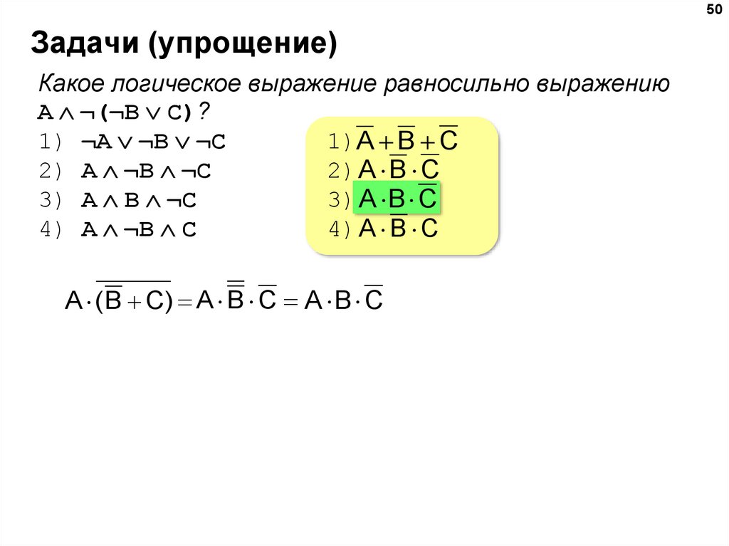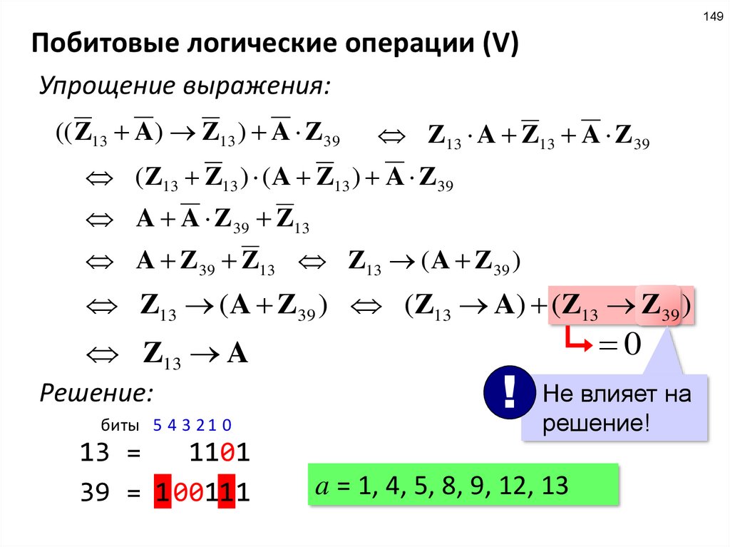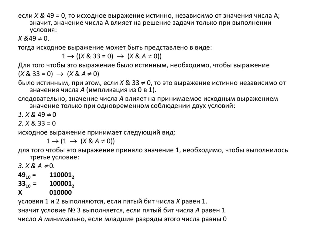 если X & 49 = 0, то исходное выражение истинно, независимо от значения числа А;значит, значение числа А влияет на решение задачи только при выполнении