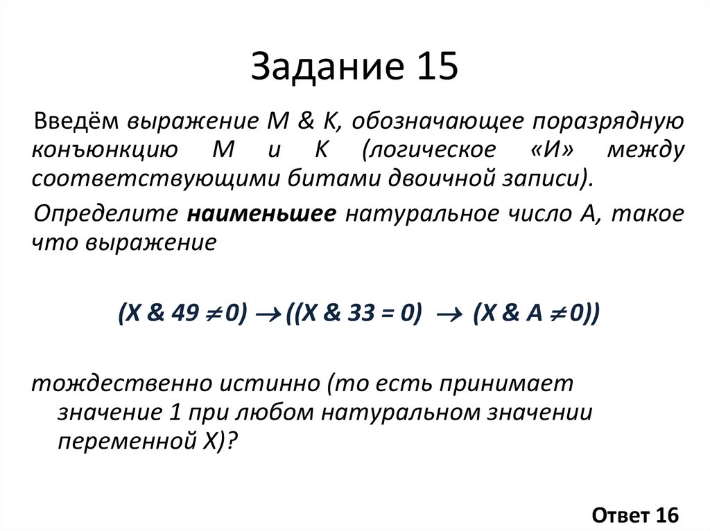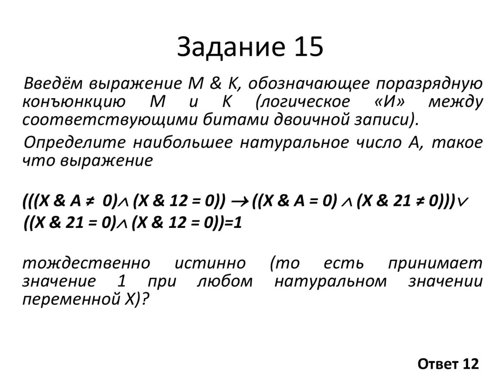 Задание 15Введём выражение M & K, обозначающее