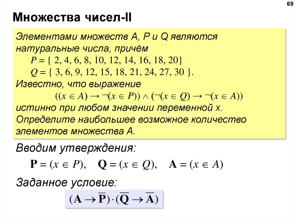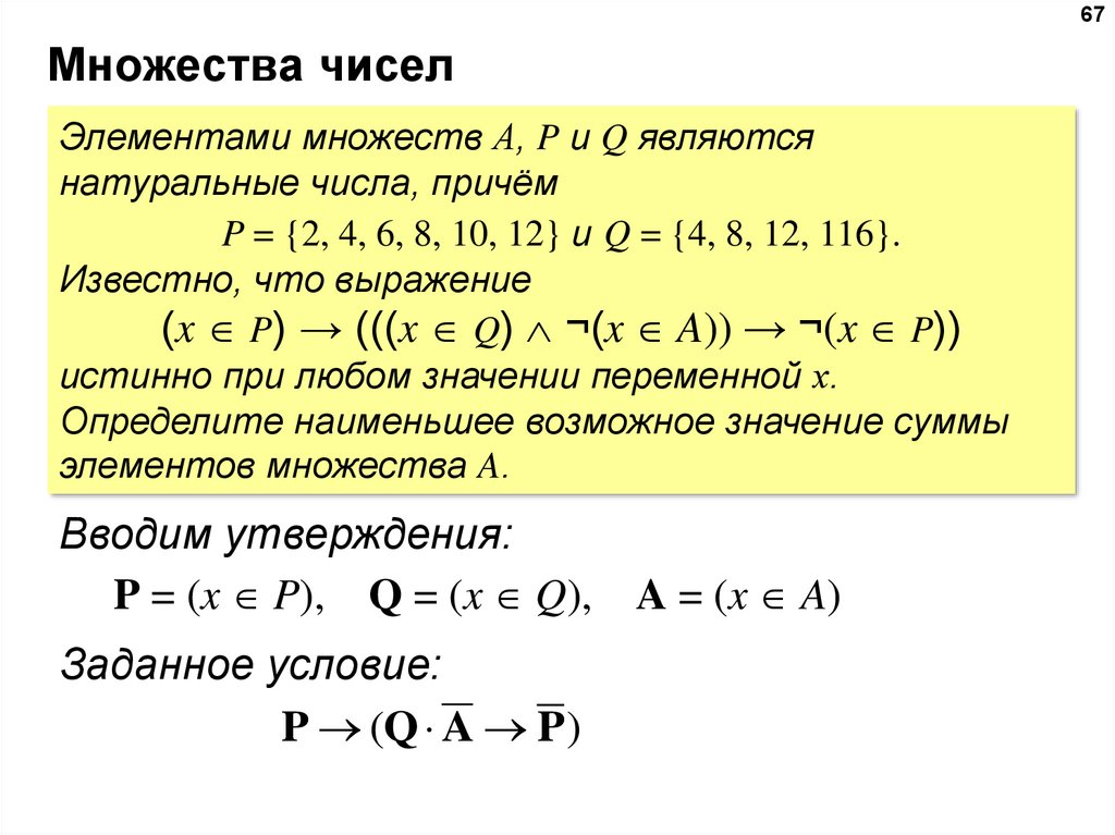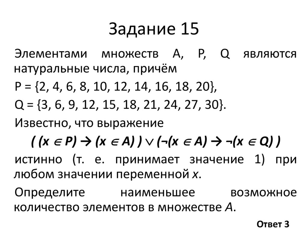 Задание 15Элементами множеств А, P, Q являются