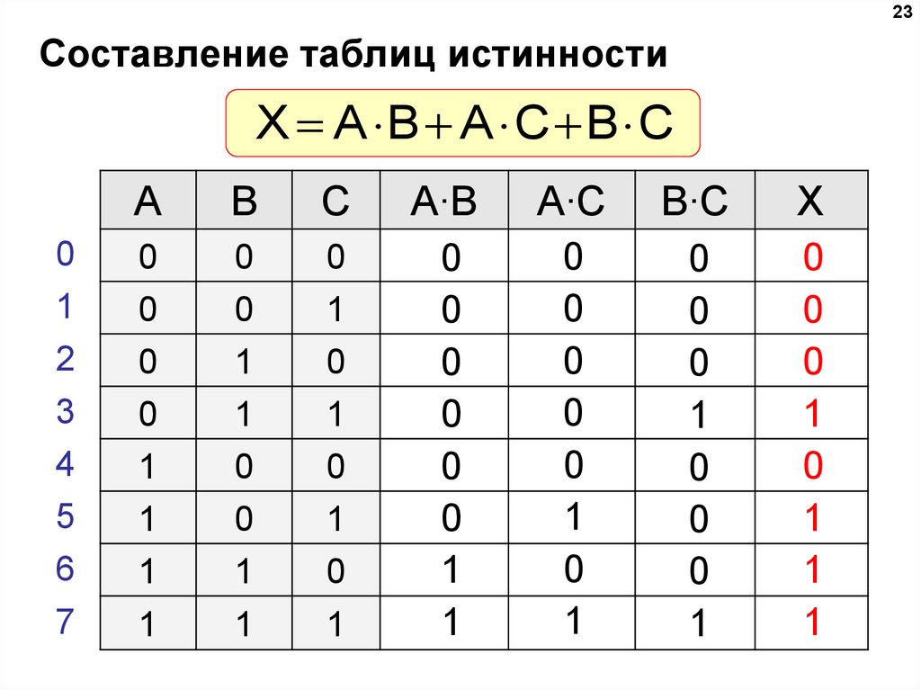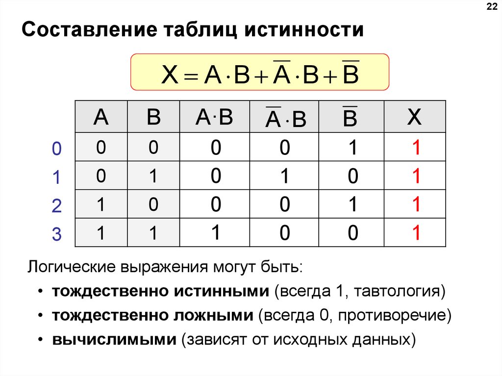 Таблица истинности логического выражения Х – это