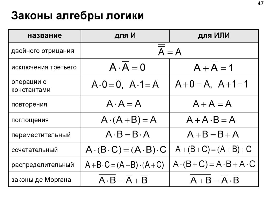 (алгебра логики, булева алгебра).