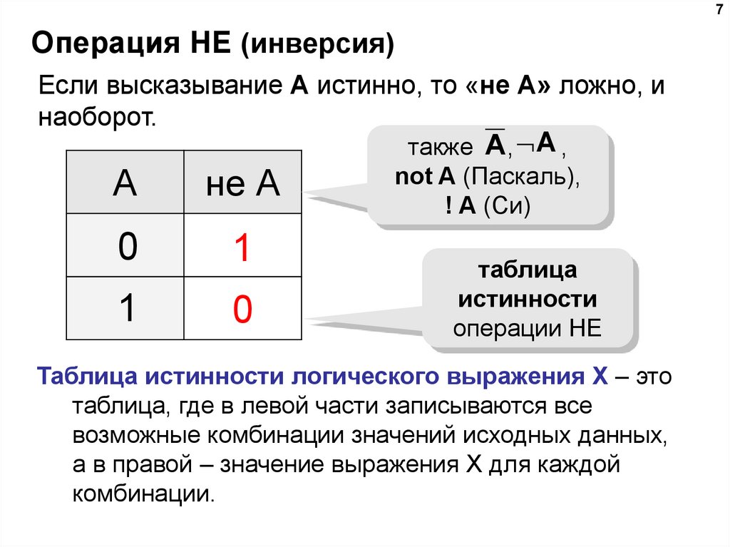 7Операция НЕ (инверсия)