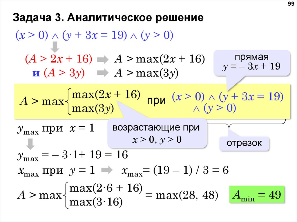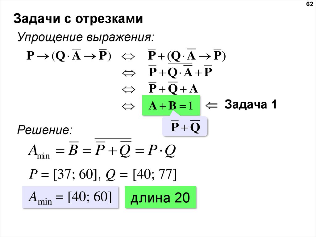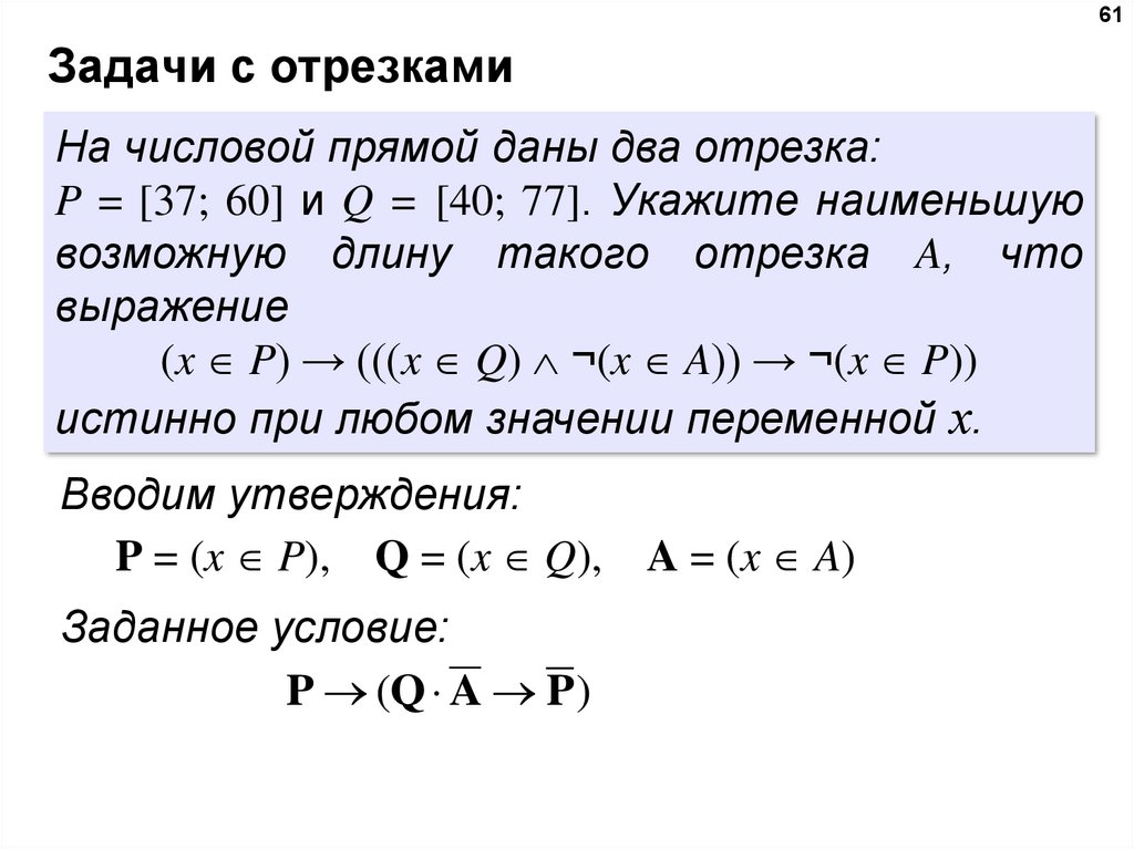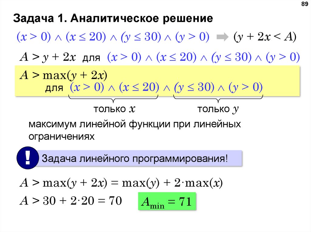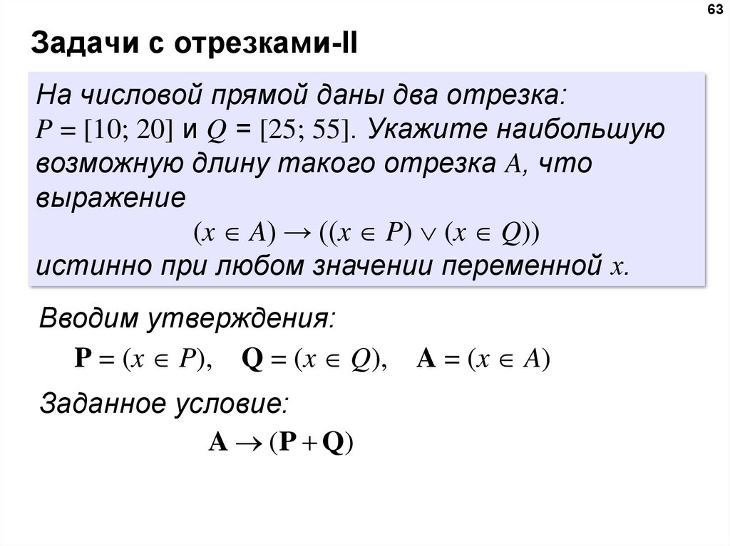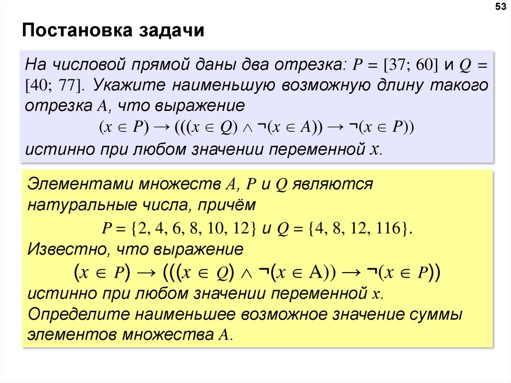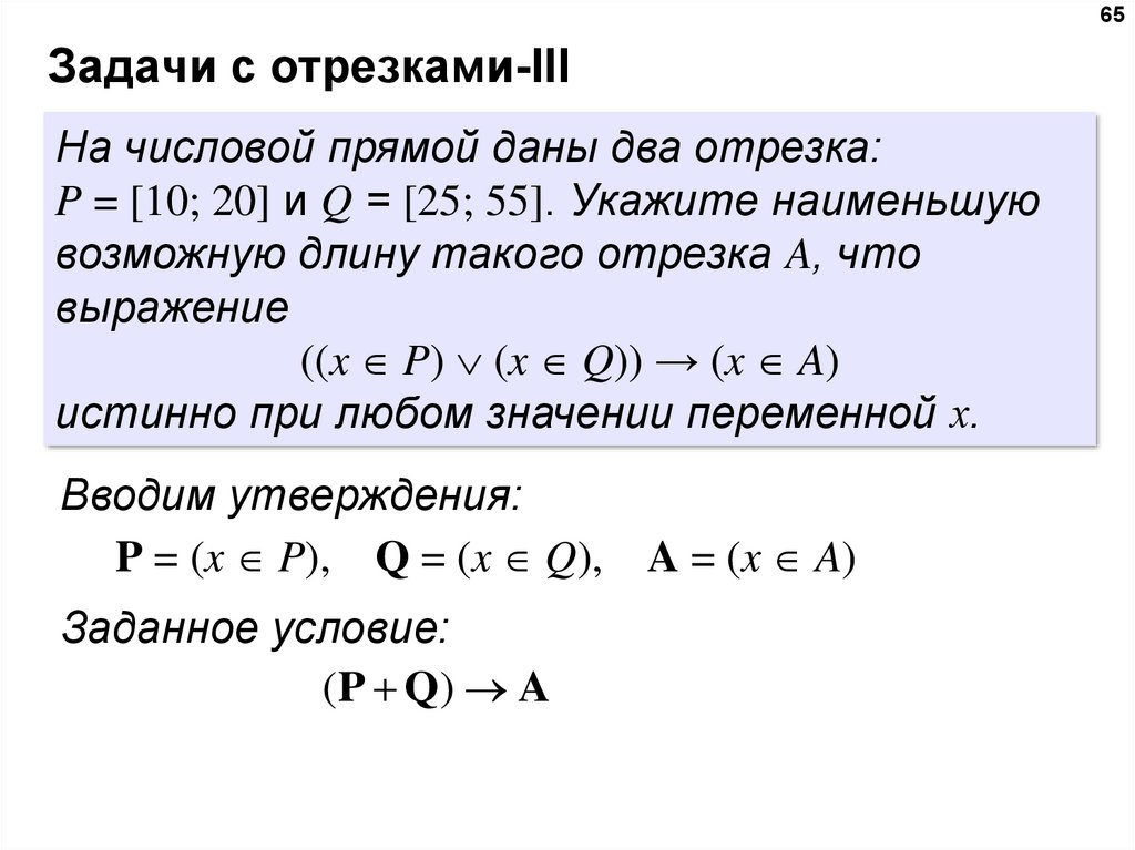 таким образом, нужно выбрать максимальное A, такое что при выполнении условий P и Q