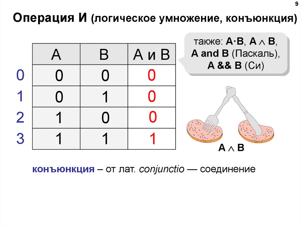9Операция И (логическое умножение, конъюнкция)