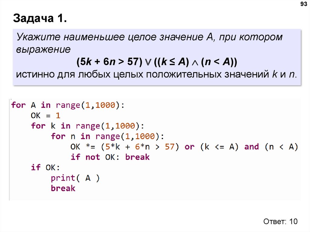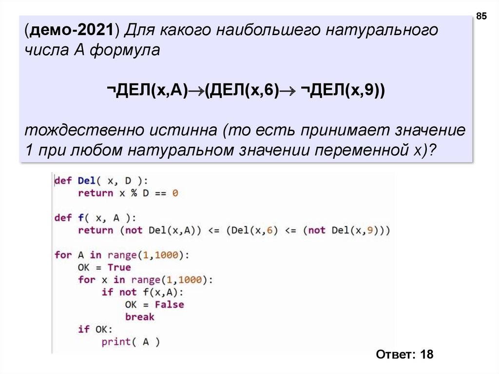 натуральное число A, такое что выражение