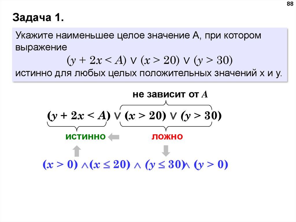следовательно, значение числа А влияет на принимаемое исходным выражением