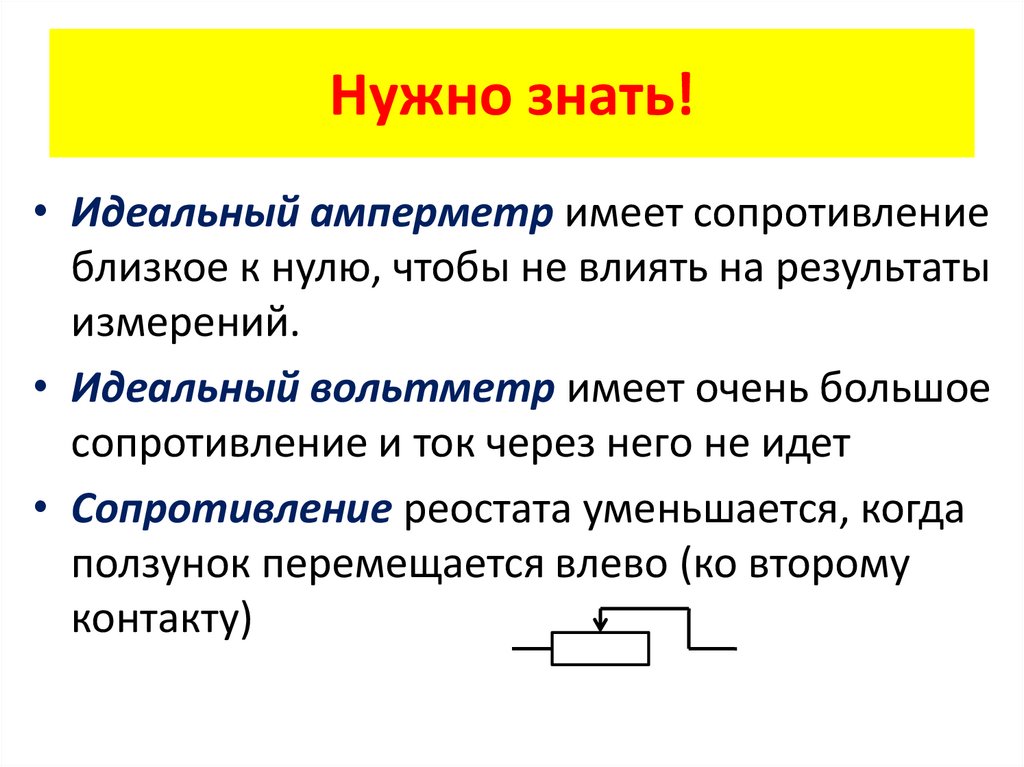 Нужно знать!• Идеальный амперметр имеет сопротивление