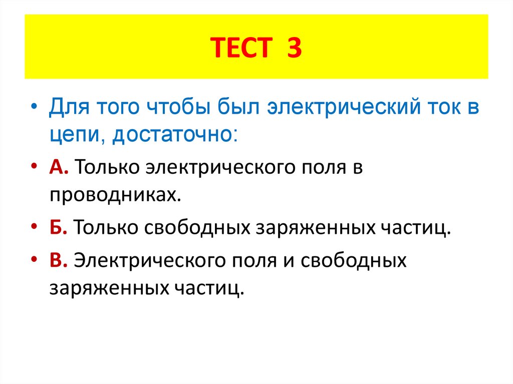 ТЕСТ 3• Для того чтобы был электрический ток в