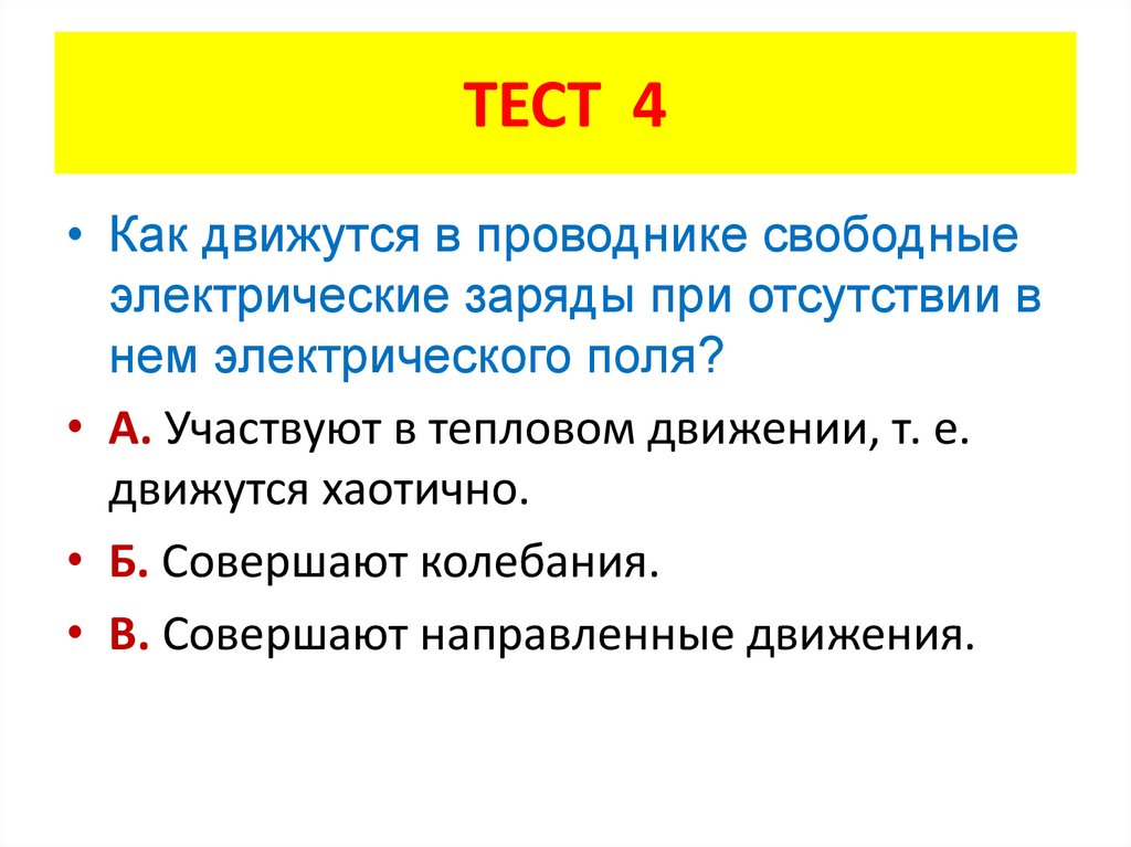 ТЕСТ 4• Как движутся в проводнике свободные