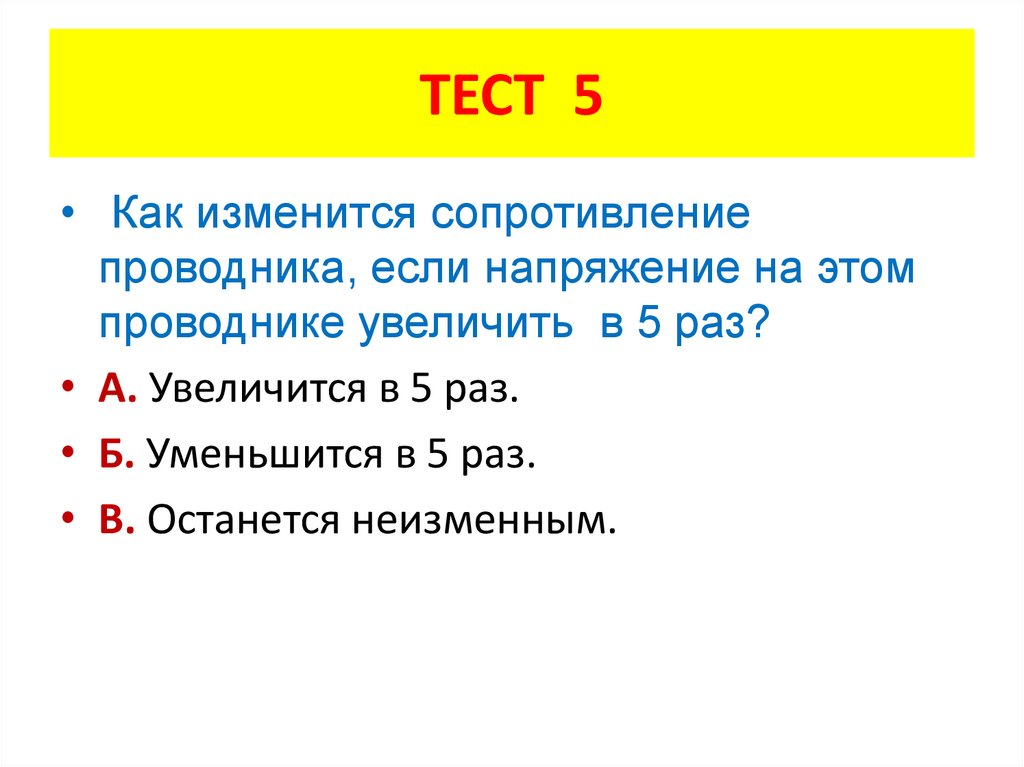 ТЕСТ 5• Как изменится сопротивление