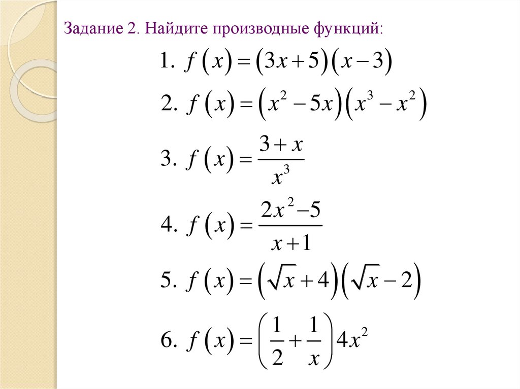 Задание 2. Найдите производные функций:1. f x 3 x 5 x 3
