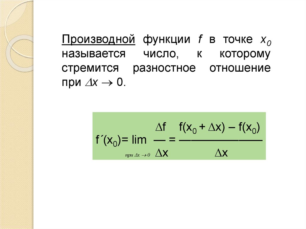 Производной функции f в точке x0называется число, к которому