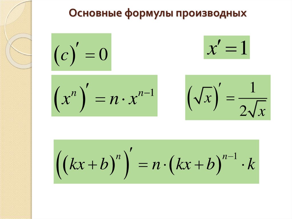 Основные формулы производныхx 1