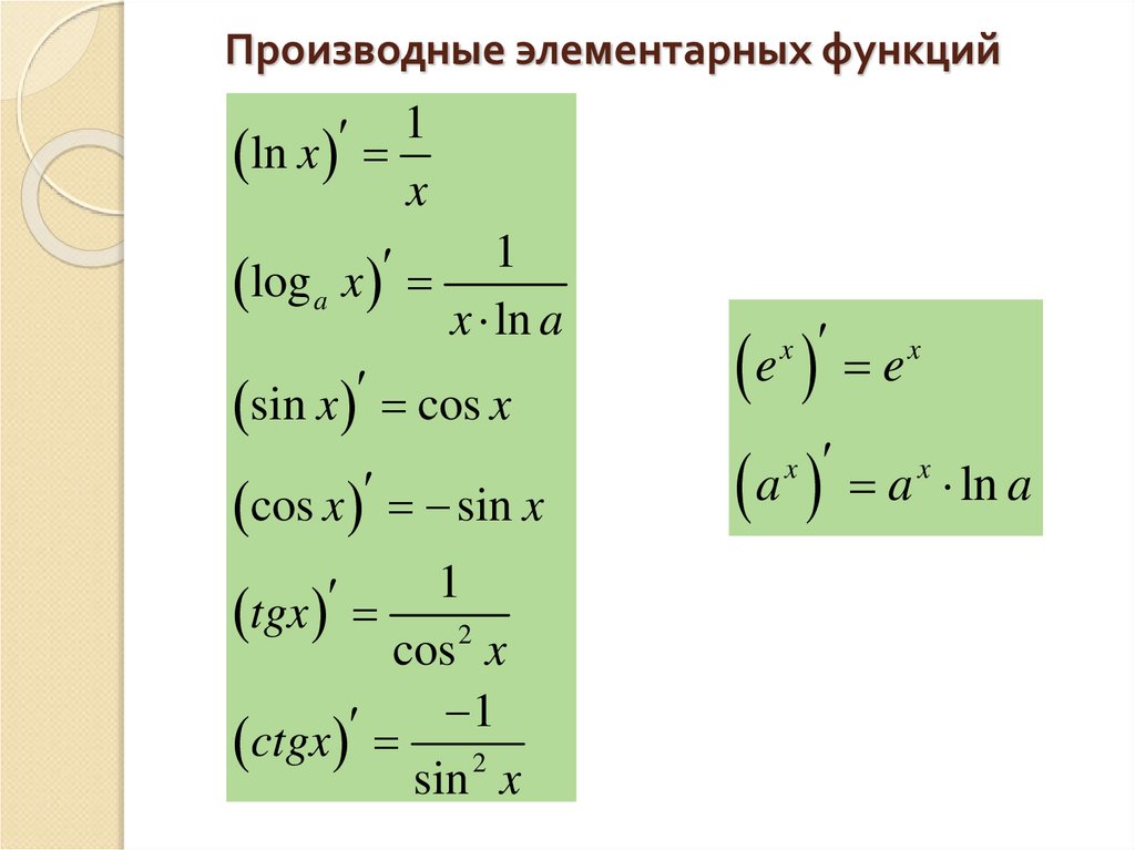 Производные элементарных функций