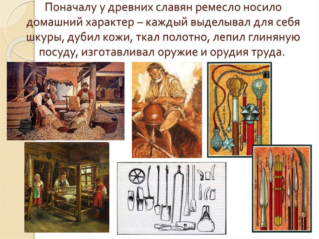 Поначалу у древних славян ремесло носилодомашний характер – каждый выделывал для себя