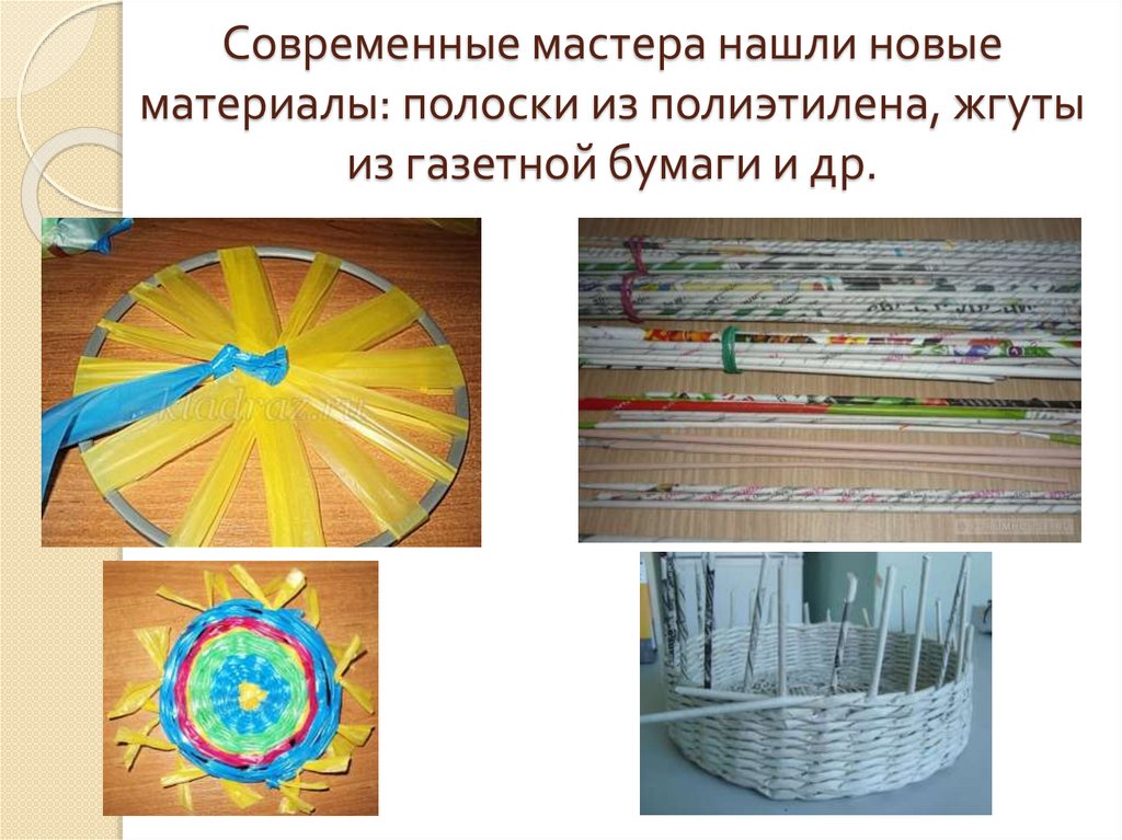 Современные мастера нашли новыематериалы: полоски из полиэтилена, жгуты