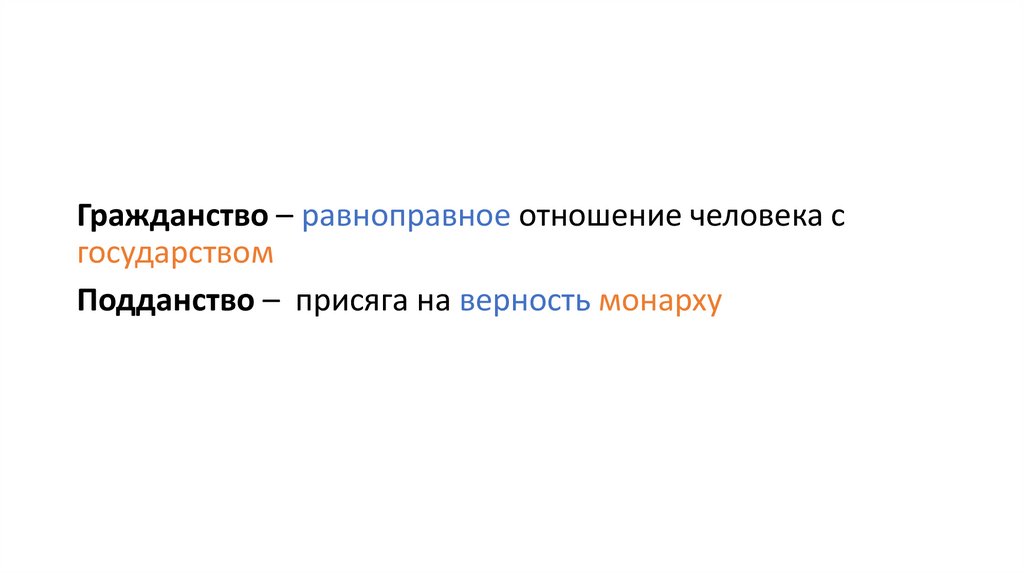 Гражданство – равноправное отношение человека сгосударством