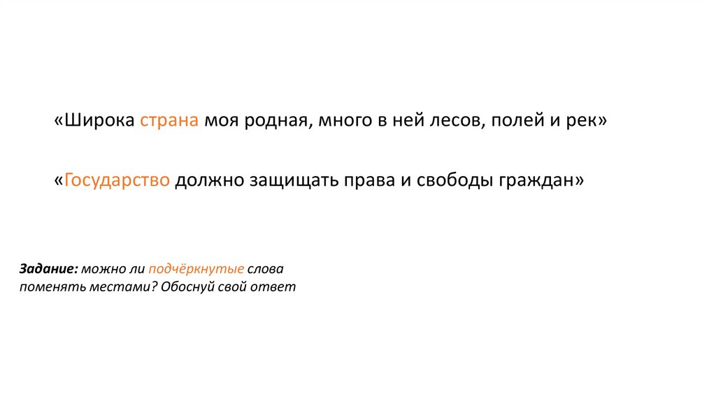 «Широка страна моя родная, много в ней лесов, полей и рек»«Государство должно защищать права и свободы граждан»