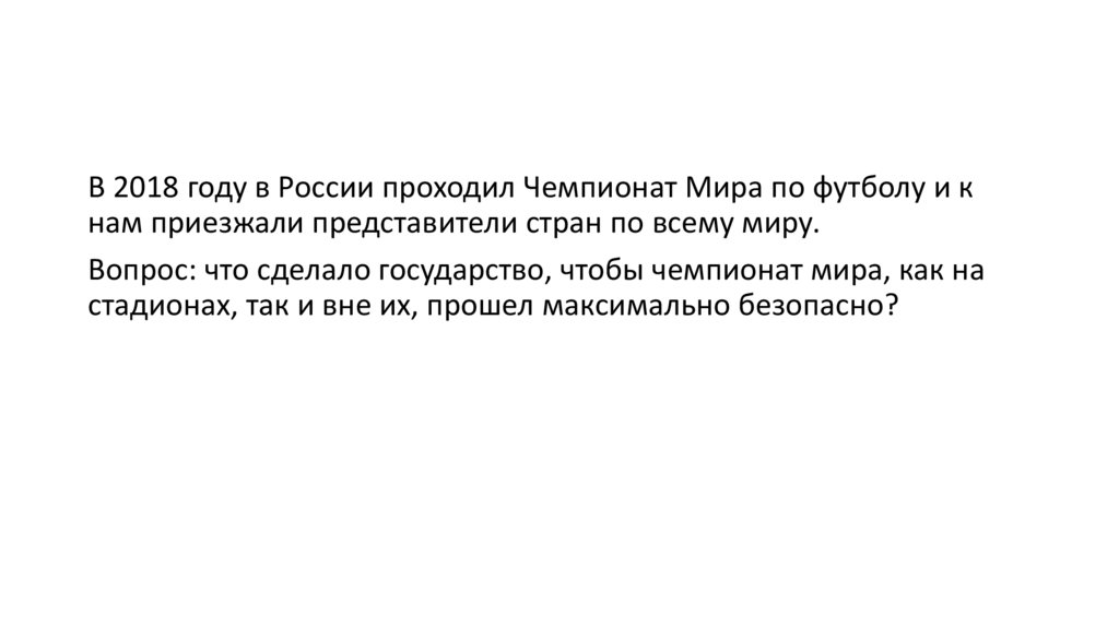 Вопрос: что сделало государство, чтобы чемпионат мира, как на