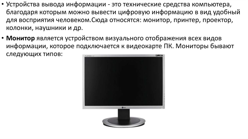• Монитор является устройством визуального отображения всех видов