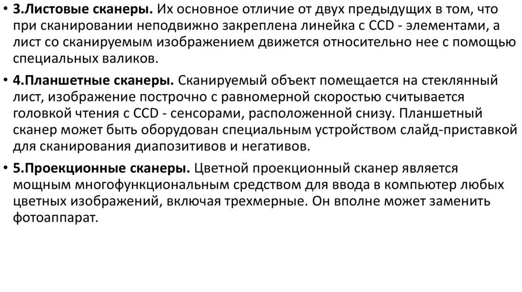 • 5.Проекционные сканеры. Цветной проекционный сканер является