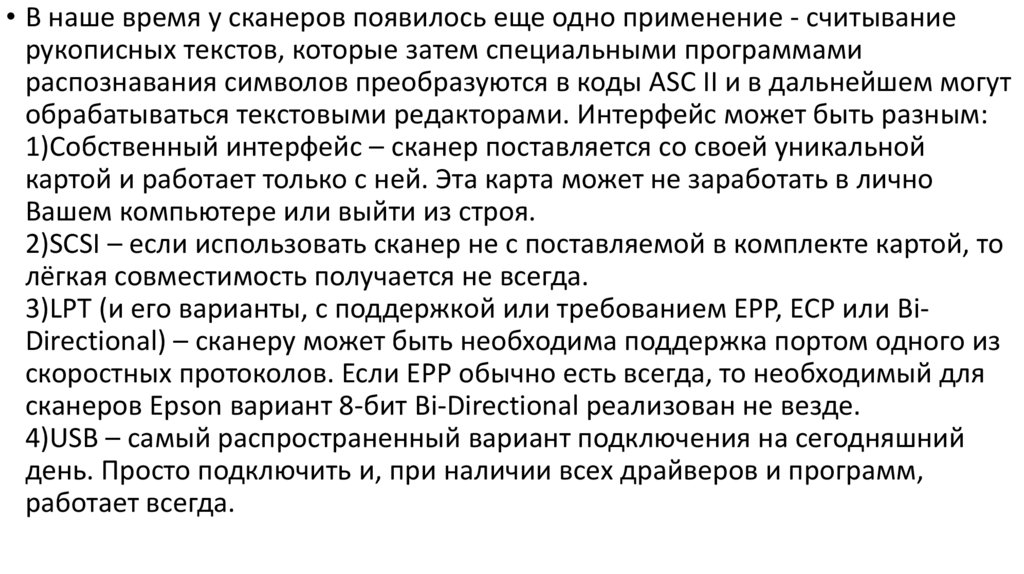• В наше время у сканеров появилось еще одно применение - считываниерукописных текстов, которые затем специальными программами