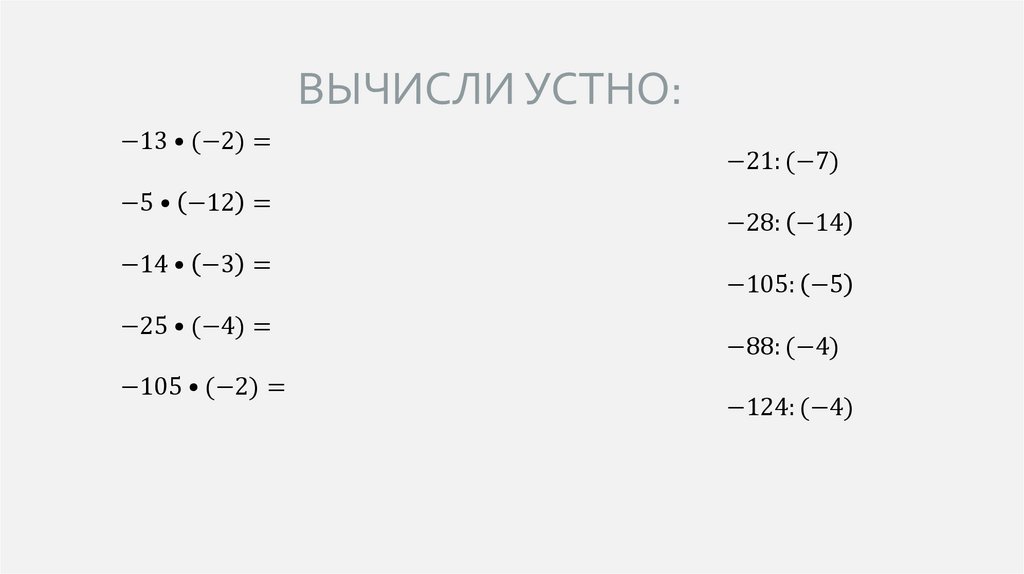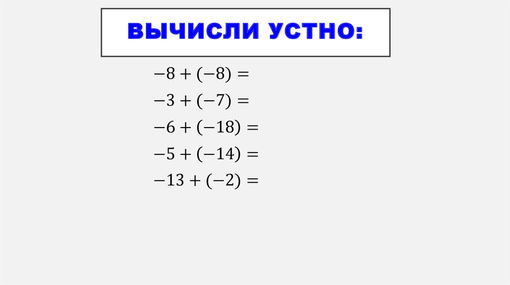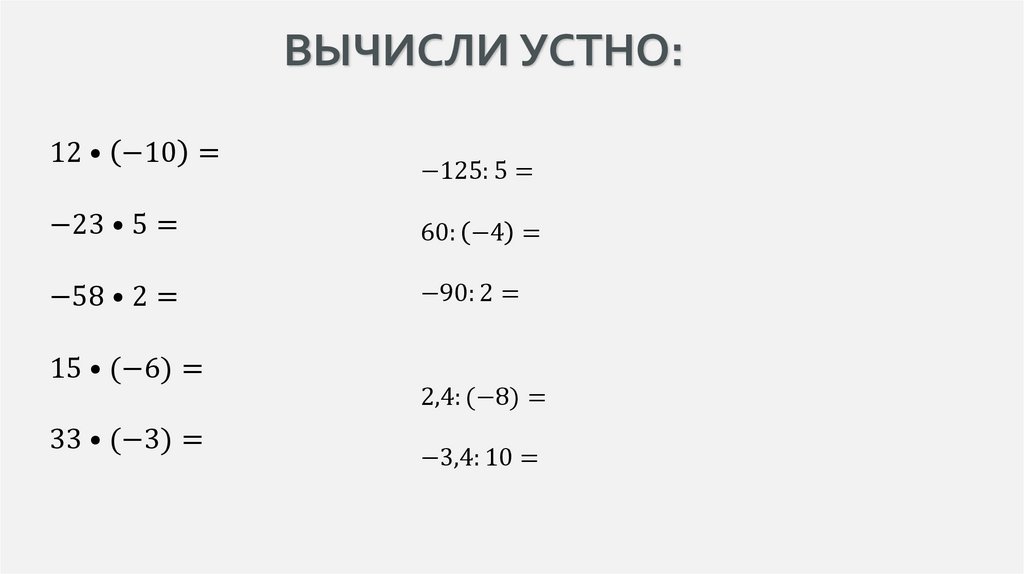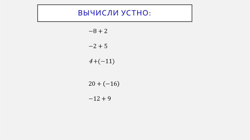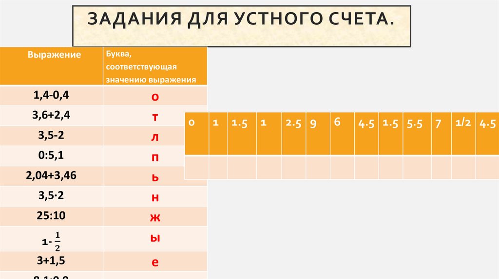 ЗАДАНИЯ ДЛЯ УСТНОГО СЧЕТА.