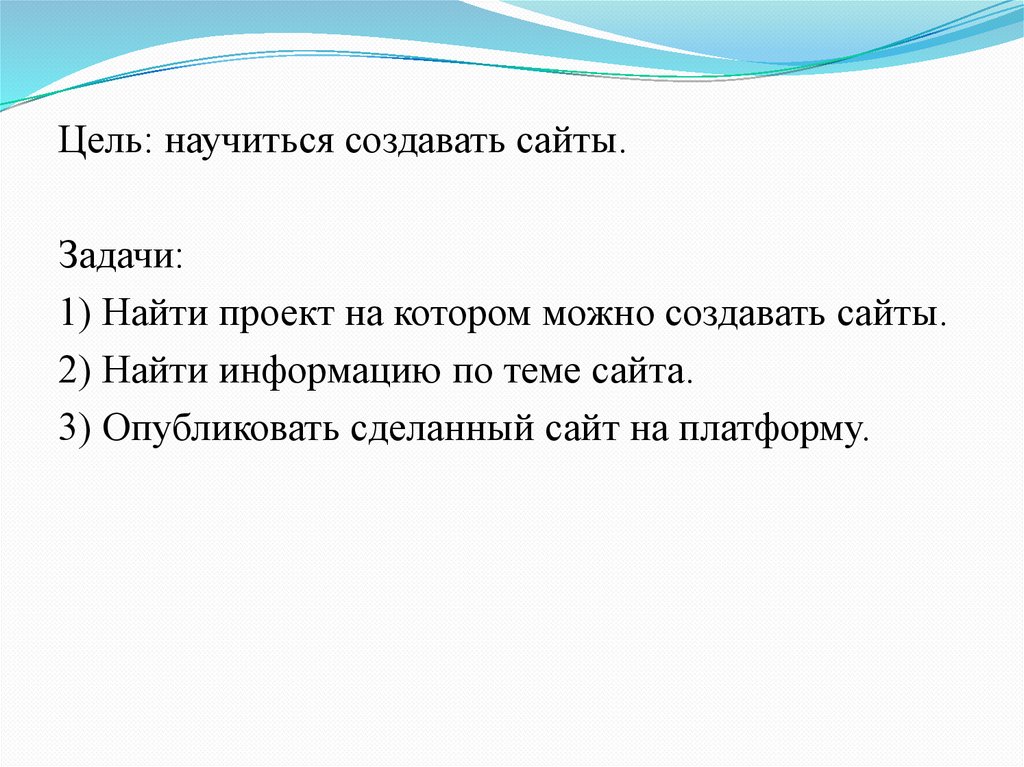 Цель: научиться создавать сайты.Задачи: