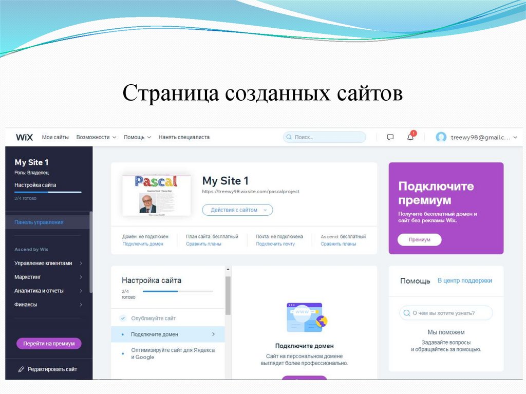 Страница созданных сайтов6.